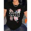 New Women T Shirt Fashion MOM Butterfly Floral Print Tshirt Casual Short Sleeve Tops Tee Women T-shirts 90s Lady Female T Shirt