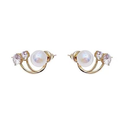 Náušnice s ihlou, Dizajn so zirkónom vykladaným perlami, Dámske vysoko kvalitné náušnice, Náušnice s klipom na ucho s dvoma spôsobmi nosenia, Temperamentné