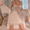 Sex underwear pure desire style new lace suspender women's satin thin sexy deep V split loungewear set