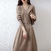 Long-sleeved Knitted Dress for Women's Autumn and Winter V-neck Pullover Long Sweater Dress Loose Long-sleeved Knitted Sweater