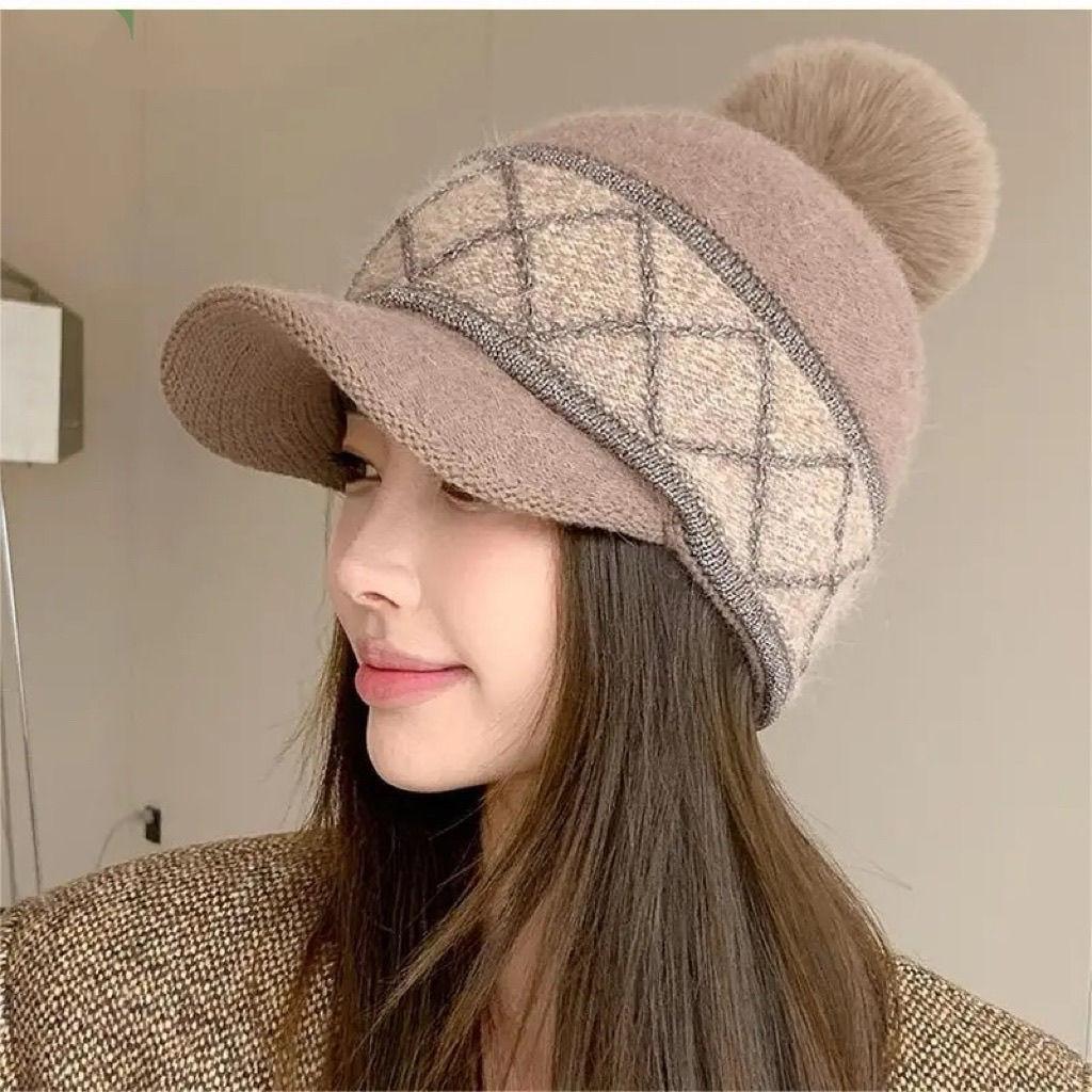 Women's Hats Are Cold-proof, New Winter Velvet Cycling Warm Wool Hats, Peaked Hats, Thickened Ear Protectors, Knitted.