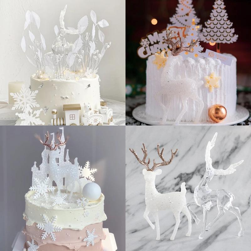 Glitter Reindeer Cake Toppers for Christmas & Birthday Decoration