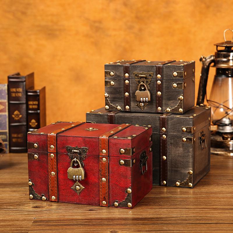 Retro-Style Wooden Jewelry Box with Lock and Stone Accents