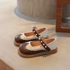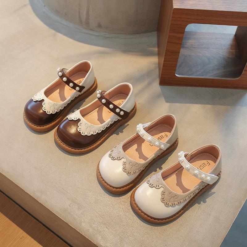 Girls' leather shoes 2025 autumn new fashion pearl children's casual shoes non-slip and wear-resistant medium and older girls' shoes