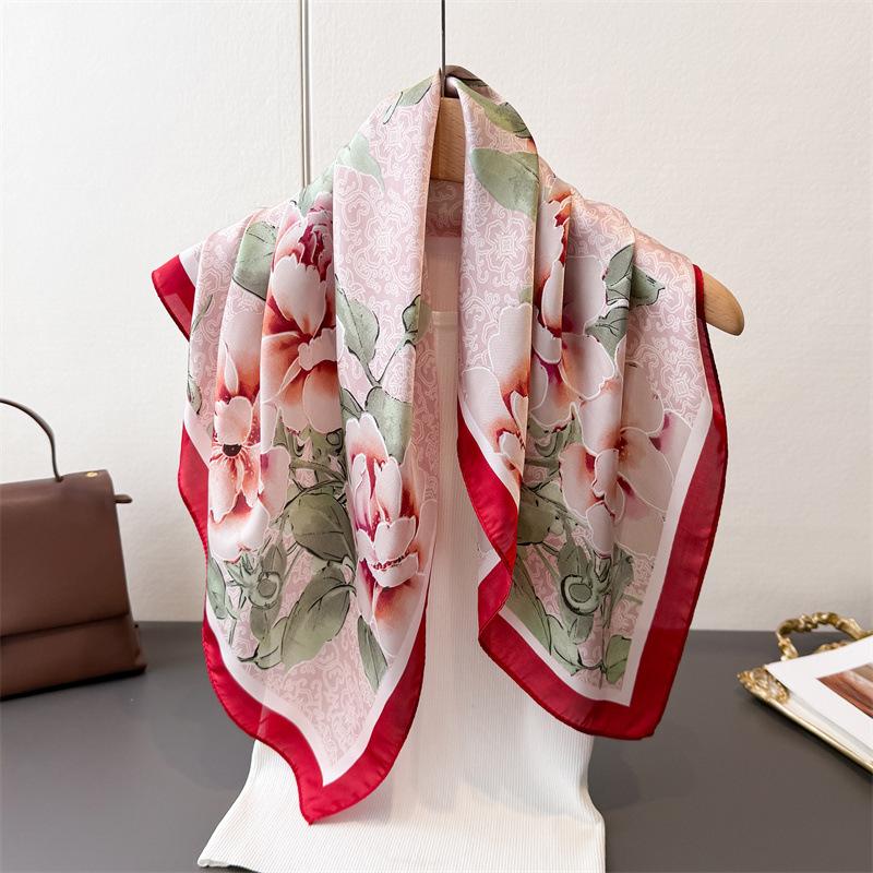 Sweet National Style Printing Simulation Silk Scarf Square Scarf High-End Shawl Versatile Neck Small Square Scarf Headscarf Scarf Women