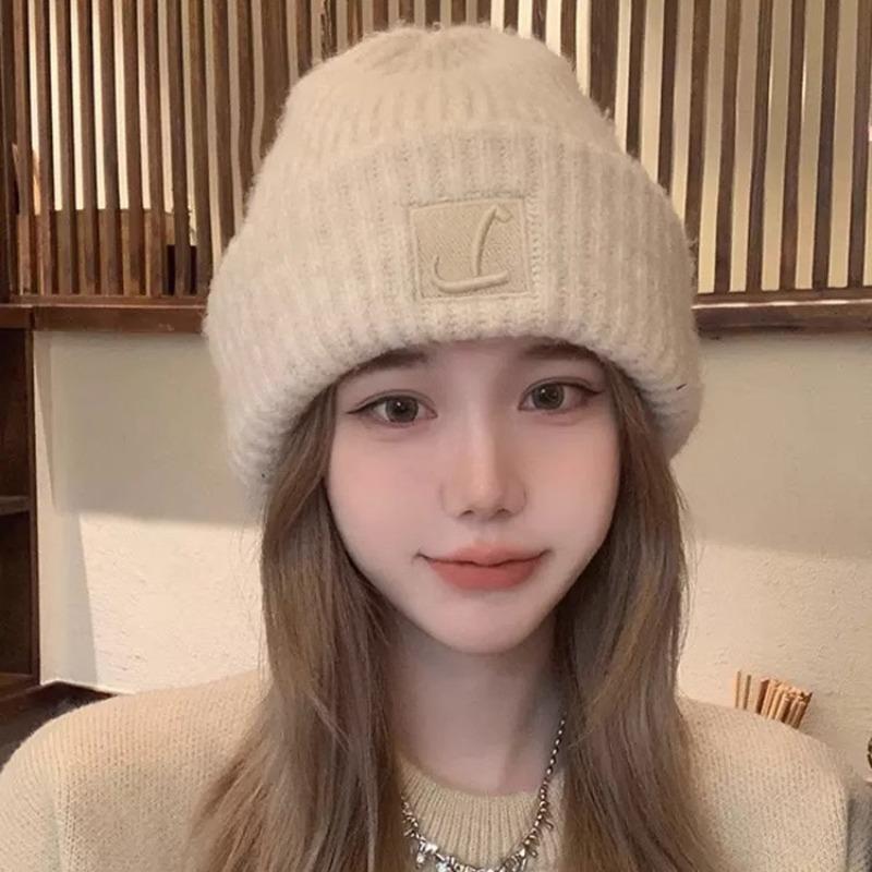 Big head circumference thick wool hat women's autumn and winter loose warm pile cold hat big face small knitted ear hat