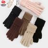 Knitted gloves Winter women's velvet thickened double-layer thermal gloves Outdoor riding cold-proof touch screen gloves