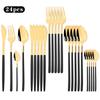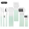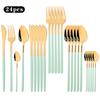 24pcs White Gold Dinnerware Cutlery Set Knife Fork Spoon Tableware Western Stainless Steel Silverware Set Coffee Spoons Flatware