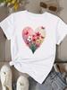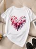 (Asian Size) love heart flower trend Print O-neck Short Sleeve T-shirts Fashion Female Casual Women's Top T Clothing Graphic Tee