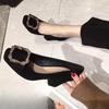 Black high heels women's thick heel new versatile professional square head rhinestone square buckle women's shoes spring and autumn single shoes women
