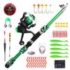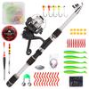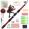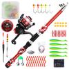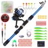 FTK 1.8m Fishing Pole Set Full Kits With Telescopic Fishing Rod And Spinning Reel Baits Hooks Travel Pole Set