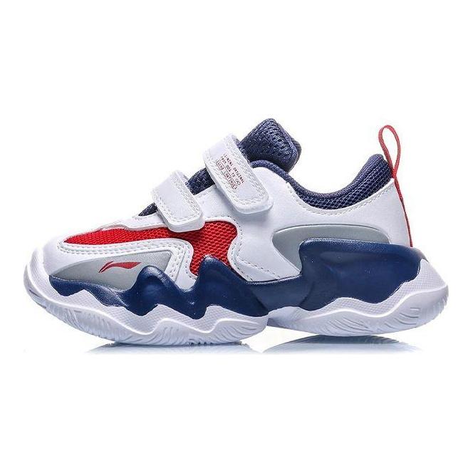 LiNing Kids Velcro Comfortable Trendy Non-Slip Wear-Resistant Breathable Lightweight Low-Top Running Shoes Kids sneaker White Red YKAQ026-3