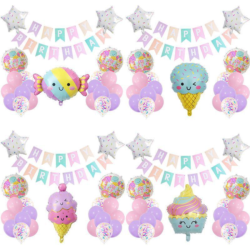 Ice Cream Aluminum Film Balloon Flag Set Cake Children's Birthday Arrangement Party Decoration Supplies