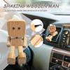 Cute Shaking Wooden Man Figurine Wooden Figure Desktop Decor Ornaments Cute Car Dashboard Decor 12 Interchangeable Magnetic Face