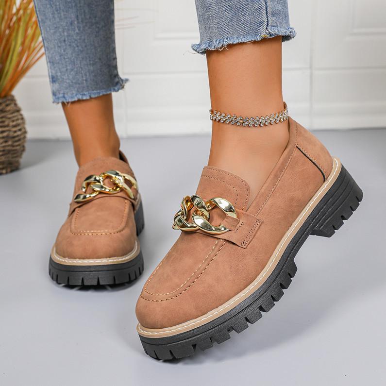 Fashion 2025 new style fashionable large-sized round-toed thick-soled low-top chunky heel casual metal chain ankle shoes