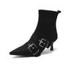 Fashion Vintage Stiletto Booties Fall New Pointed Toe Metal Buckle Back Zip Anti-Slip Wear-Resistant Heels
