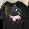 American fun cat pattern printing round neck short-sleeved t shirt men and women summer loose design couple half sleeved hip hop