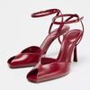Fashion Sexy Open Toe Red High Heels Women Wedding Prom Shoe Summer Cozy Leather Narrow Band Ankle Strap Sandals for Women Zapatos Mujer