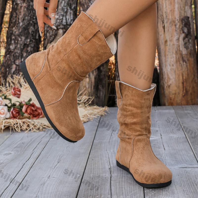 Fashion Women Retro Western Cowboy Boot Spring Autumn New Casual Suede Ankle Boots Woman Comfort Low Heels Western Boots Plus Size 43