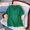 Women's Plus Size T-Shirt Summer Cotton Short Sleeve Loose V-Neck Top