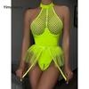 Yimunancy Transparent Mesh Bodysuit Women Backless Gothic Skinny Sexy Bodysuit Body Femme