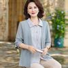 Autumn Coat Comfortable Western Style Middle-aged and Old New Joker Leisure Solid Color Mother Fake Two Shirts Shirt Cover Meat.