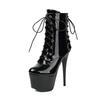 Sexy Women's Heels Boots Platform Stiletto Nightclub Shoes Belt Buckles Decor Ankle Boots Gold Silver Patent Leather Footwear