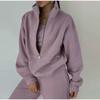 Experience comfort and style with this women's two-piece set, featuring a casual zipper fleece knit sweatshirt and matching sweatpants. Designed in a solid pattern, this fashionable set is crafted from a blend of cotton and polyester materials, offering coziness and durability. The cotton polyester fur ensures extra warmth without sacrificing breathability. Perfect for both European and American style enthusiasts, this set combines simplicity with a modern touch, making it an ideal choice for relaxed outings or lounging at home.