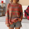 Women Autumn Sweater O-Neck Long Sleeve Vintage Oversized Pullover Sweater Ethnic Graphic Knit Tops Daily Wear