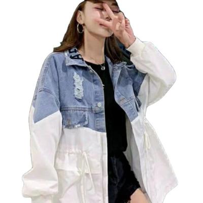 Dámske voľné topy s dlhým rukávom Patchworková ležérna bunda nadmernej veľkosti jarná a jesenná džínsová bunda