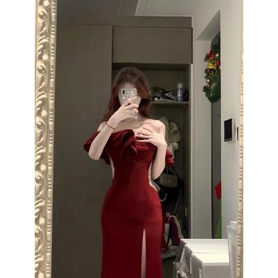 Christmas robe red thin neck tube top dress hip wrap winter women's clothes royal sister atmosphere