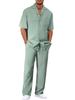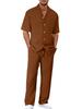2025 Men's Casual Trendy Set: Turn-Down Collar, Short Sleeves & Long Pants
