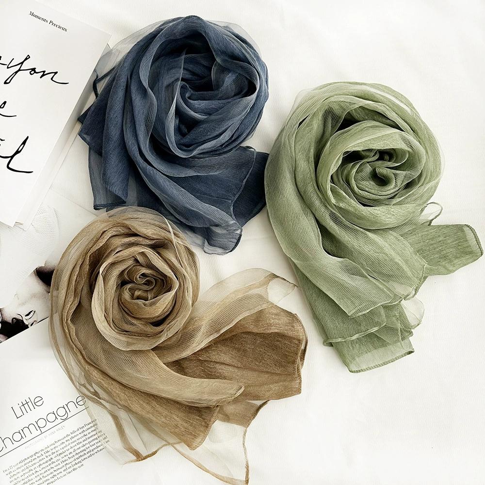 Solid Color Mulberry Silk Scarf Long Length Sunscreen Silk Scarf for Women Decoration Water Wave Pattern Scraves and Shawls