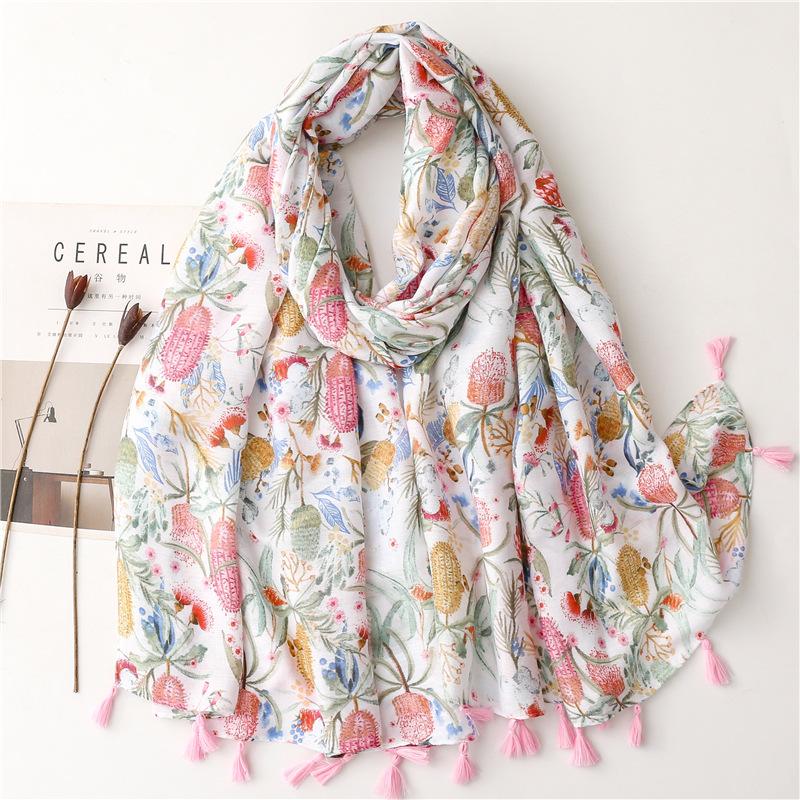 New Women Fashion Luxury Aztec Floral Tassel Viscose Scarf Lady Print Soft Shawls and Wraps Pashmina Muslim Hijab Snood 180*90Cm