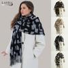 Fashion Print Tassels Shawl Imitation Cashmere Thickened Winter Warm Scarf Windproof Foulard Pashmina Hijabs for Women