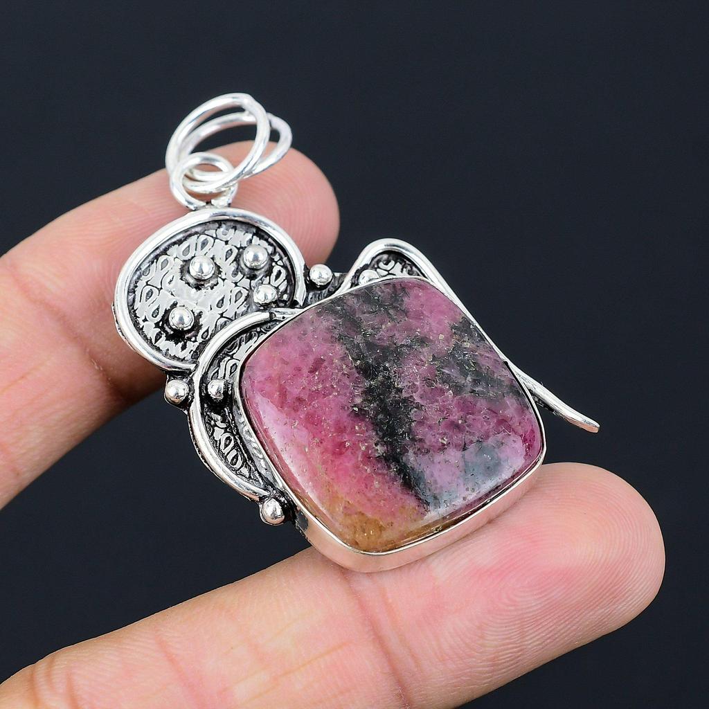 Birthday Gift For Her Natural Rhodonite Gemstone Pendant 925 Sterling Silver