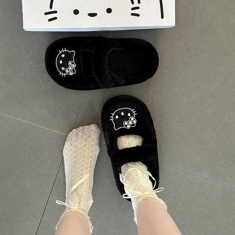 Cute cartoon Hello Kitty thick bottom plush star half slippers 2025 autumn and winter new outer wear female punk style