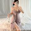 Sexy pajamas summer ice silk high-end thin small chest lace suspender nightdress set slightly transparent qqny pure lust
