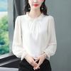 Spring Autumn Beading V-neck Temperament Solid Shirt Women Long Sleeve Ruffles Elegant Blouse Pullover Top