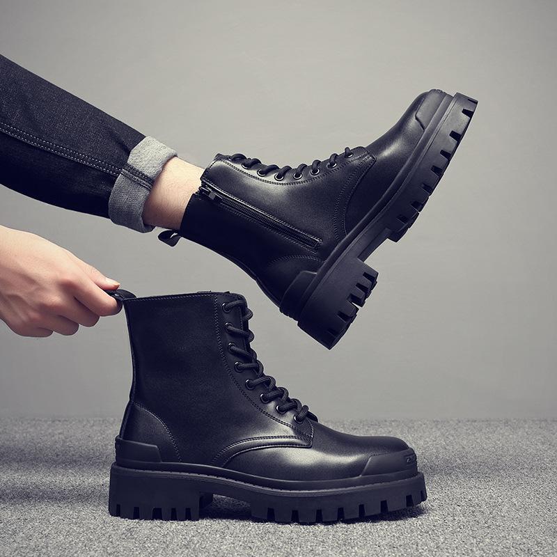 Leather Martin boots men's high-top British style mid-top trendy shoes tooling spring and autumn locomotive soft leather spring and autumn velvet men