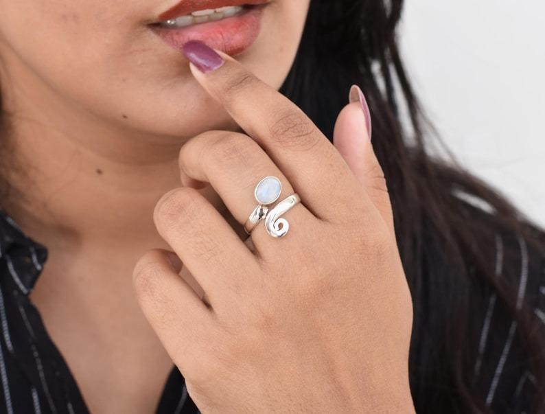 Solid 925 Sterling Silver Rainbow Moonstone Gemstone Statement Women Designer Ring Boho Jewelry Gift For Her