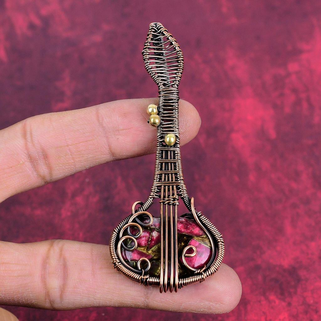 Copper thulite pendant copper wire wrapped pendant guitar gemstone pendant handmade pendant copper wire wrapped jewelry anniversary gifts