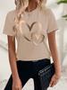 Women's Casual Short Sleeve T-Shirt with Four Heart Graphic Print - Black & Golden, Medium Stretch Round Neck