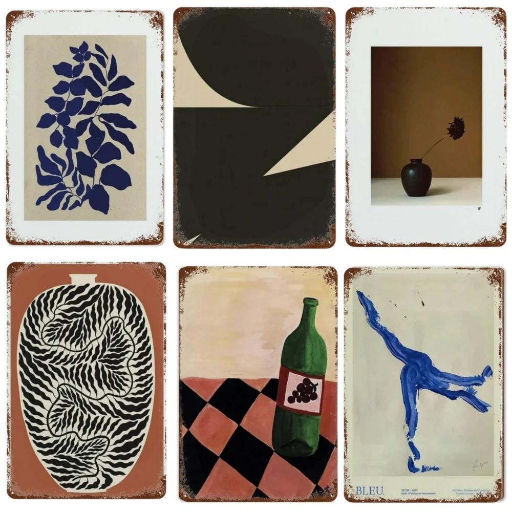 Abstraktný Minimalizmus Citrónová Váza Geometrické Kávovar Bar Nástenné Umenie Plagáty Tlače Škandinávske Kovové Značky Nástenné Obrazy pre Obývacia Izba Kvetinárstvo