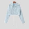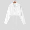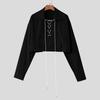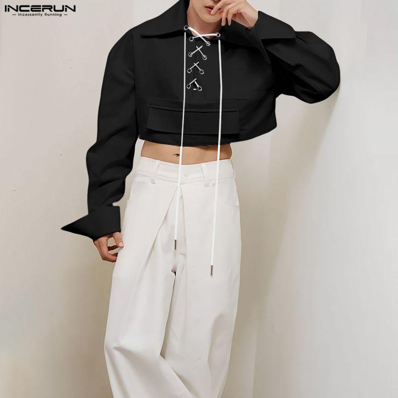 INCERUN Oversized Men Lapel Neck Long Sleeve Bandage Casual Loose Cropped Shirts