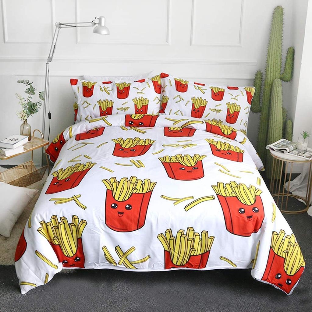 Hamburger Fries Candy Bedding 3D Giant Burger Duvet Cover Set 3 Pieces Fun Fast Food Bedspread King Size Polyester Bedding Set