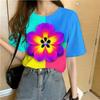 Colorful, beautiful, and pretty floral 3D printed T-shirt, women's casual short-sleeve round-neck top, Harajuku Y2K style women's clothing