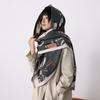 Aesthetic Style Beauty Holding An Umbrella Print Imitation Cashmere Scarf Women's High End Elegant Temperament Niche Warm Shawl