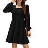 Women's Square Neck Long-sleeved Autumn Dress Casual Baby Sweater Dress