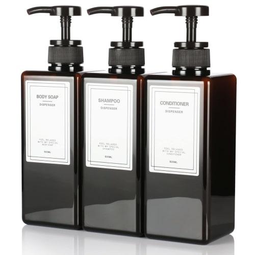 IRETION Shampoo Bottle Dispenser Refill Bottle with Funnel, 600ml, Set of 3 (Brown)